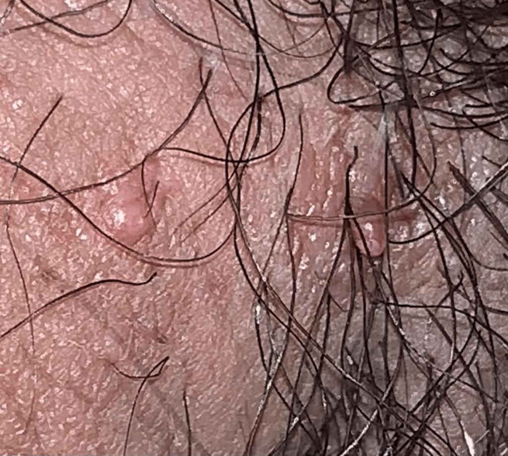 - ลักษณะรอยโรคบริเวณหัวหน่าว: