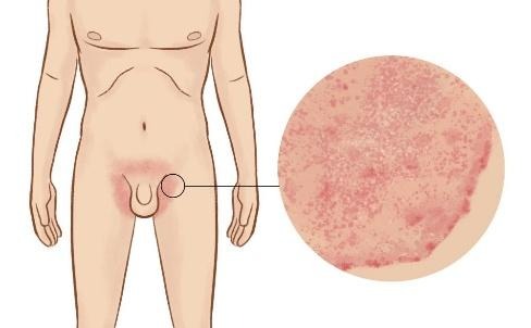 ลักษณะเด่นที่สุด คือ ผื่นแดงหรือน้ำตาลแดง มีขอบเขตชัดเจน มักมีขอบนูนเล็กน้อยและมีอาการ คันรุนแรง โดยเฉพาะบริเวณขาหนีบและพับก้น [1]